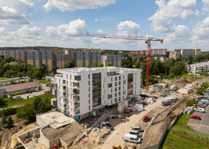 Zakończyliśmy IX z X etapów budowy budynku Panorama House 🙂 Polecamy Państwu najnowszą galerię FOTO z budowy – wszystko zapina się krok po kroku na ostatni guzik. Budynek można podziwiać już w pięknej i bardzo nowoczesnej odsłonie, dzięki nietuzinkowej elewacji oraz pojawiającym się każdego dnia kolejnym detalom architektonicznym. We wnętrzu budynku praca wre. Na finiszu są roboty wykończeniowe mieszkań oraz rozpoczęło się wykończenie części wspólnych. W budynku zamontowano dwie windy cichobieżne. Trwają równolegle prace zewnętrzne prowadzone w ramach kompleksowego zagospodarowania terenu. Nie możemy się już doczekać efektu końcowego 🙂