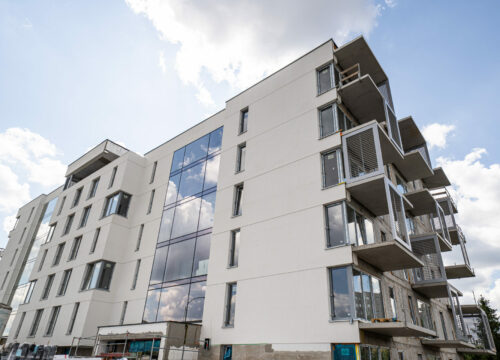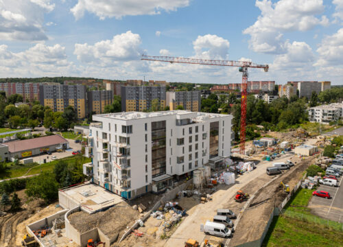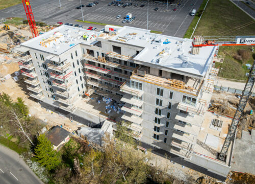 Za nami VIII z X etapów budowy budynku Panorama House 🙂 Zachęcamy do obejrzenia najnowszej galerii FOTO z budowy – aż serce rośnie patrząc na piękną architekturę tego nowoczesnego budynku. Pogoda sprzyja naszemu Generalnemu Wykonawcy TK-NOVA, więc prace wykończeniowe idą pełną parą 🙂 Dużo się dzieje : instalacje elektryczne, instalacje sanitarne i wentylacyjne oraz końcówka montażu nowoczesnej stolarki okiennej. Rozpoczęły się również prace ocieplenia budynku i elewacyjne. Przygotowujemy się do tynkowania ścian 73 mieszkań.