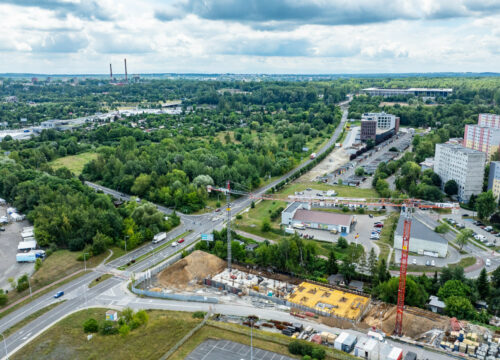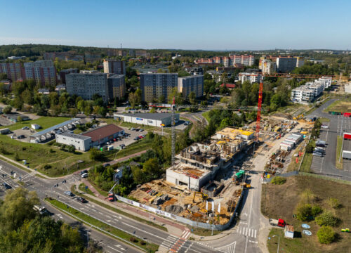 Już nas widać 🙂 Wznoszenie drugiej kondygnacji podziemnej wykonane, tym samym na dniach zakończy się III z X etapów budowy 🙂 Trwają prace zbrojeniowe przed wylaniem ostatniego fragmentu stropu nad kondygnacją garażową (-1). Na zakończonej części rozpoczęły się również prace nad konstrukcją kondygnacji parterowej budynku. Żartobliwie mówiąc „wyszliśmy z ziemi” 😉 Zapraszamy do obejrzenia najnowszej galerii FOTO wykonanej z drona. Wszystko idzie zgodnie z planem, a każdy następny tydzień będzie odsłaniał wznoszone kondygnacje mieszkalne.